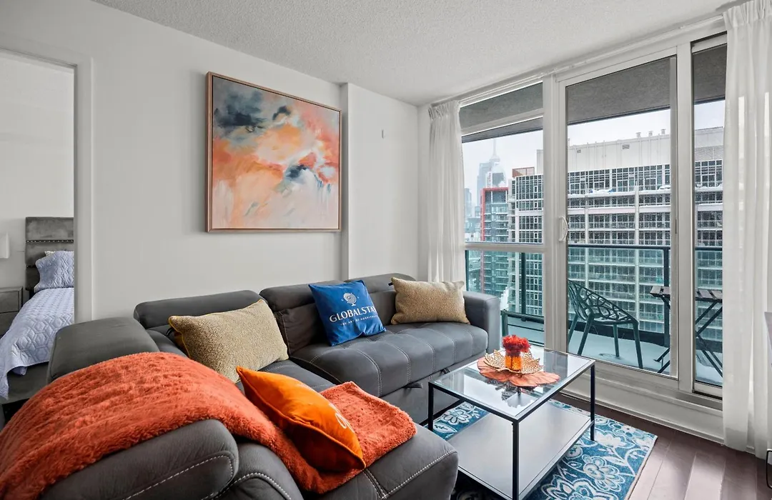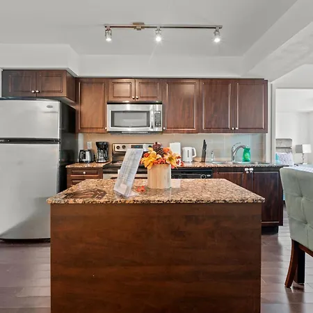 Experience ultimate comfort in Autumnaly Whisper 2 Bedroom & Den In The Heart Of The City apartment's kitchen, supplied with an electric kettle, a refrigerator, and kitchenware. Toronto Union train station is merely 1.8 km away, and Fleet Street bus stop is not far from Autumnaly Whisper 2 Bedroom & Den In The Heart Of The City apartment.